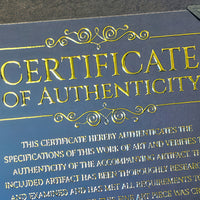 Each commissioned or limited-edition art piece includes a signed Certificate of Authenticity, verifying its origin and collector’s value. This provides lasting value that your artwork is a true keepsake and heirloom.